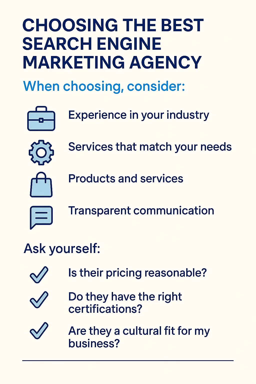 Taking the time to evaluate these factors will lead you to the right partner. A good match ensures a successful collaboration and optimal SEM results.