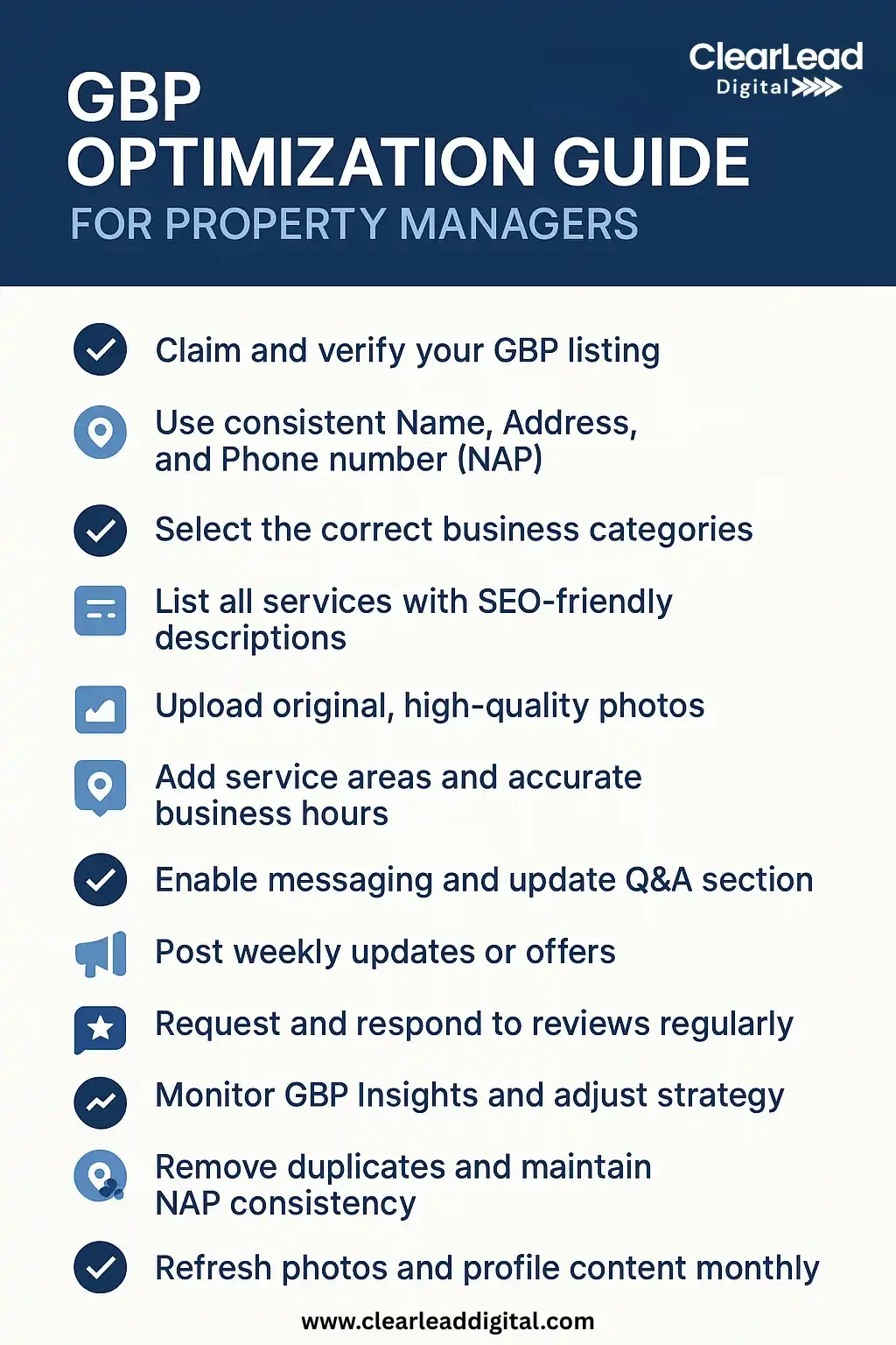 For property managers, optimizing your GBP means better visibility, stronger trust, and more quality leads from local landlords, tenants, and real estate investors.