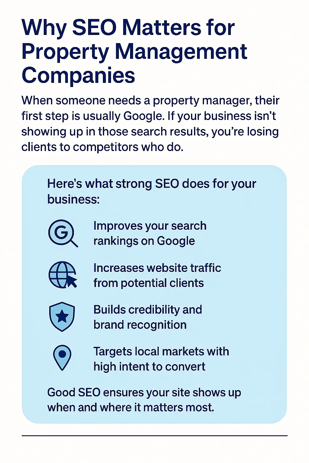 When someone needs a property manager, their first step is usually Google. If your business isn’t showing up in those search engine results pages (SERPs), you’re losing clients to competitors who are. That’s why a focused marketing strategy SEO approach is critical.