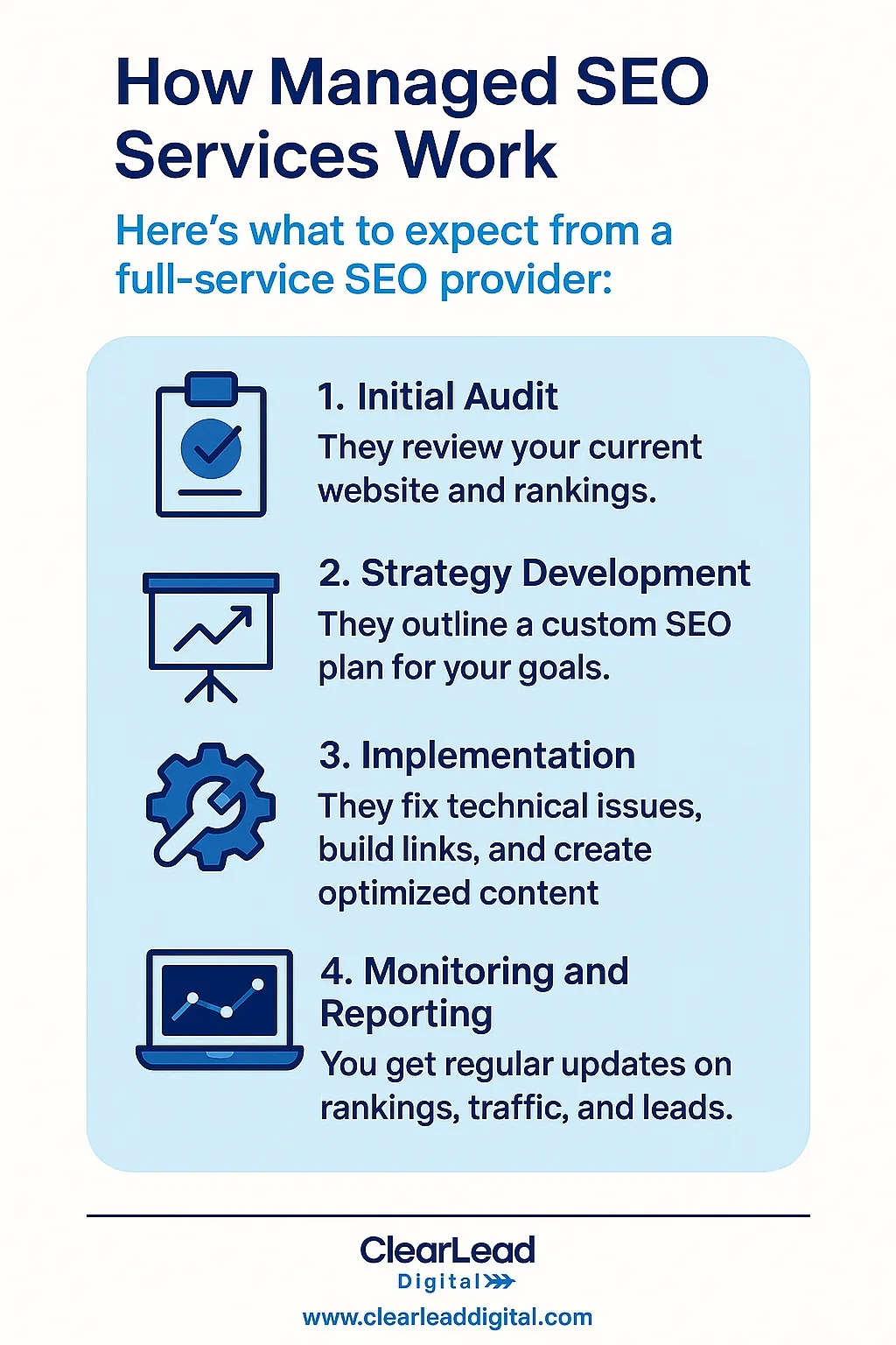 This is why many companies move away from self managed SEO and toward managed services. With experts handling execution, you avoid common pitfalls and accelerate results.
