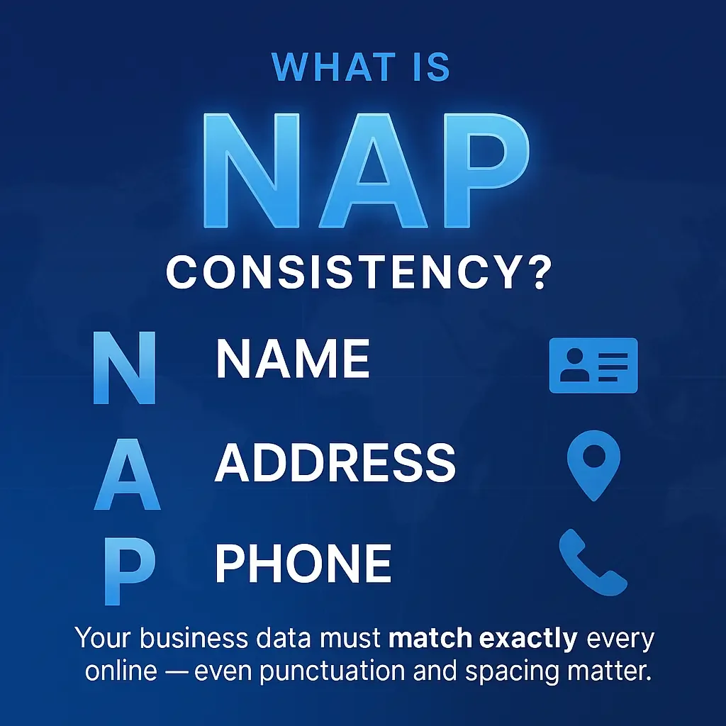NAP stands for Name, Address, and Phone number — the three key business identifiers that search engines use to verify your legitimacy.